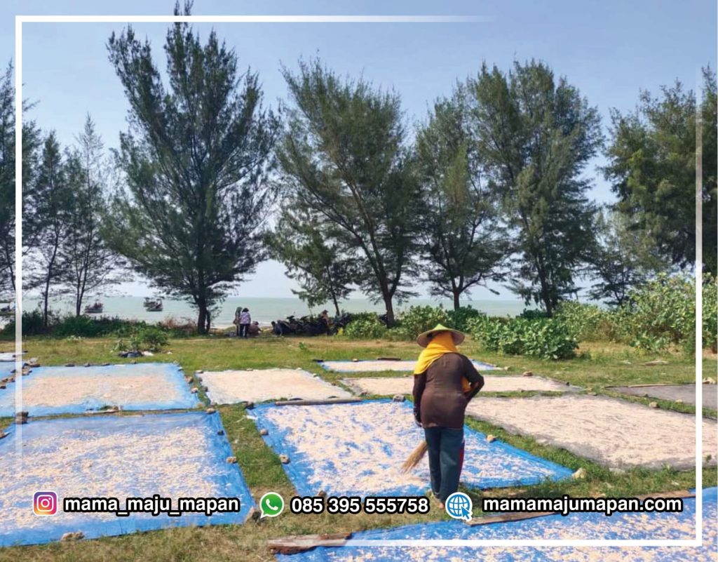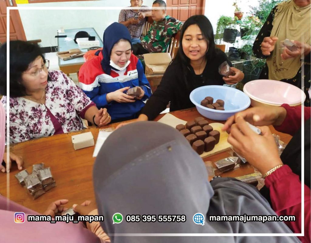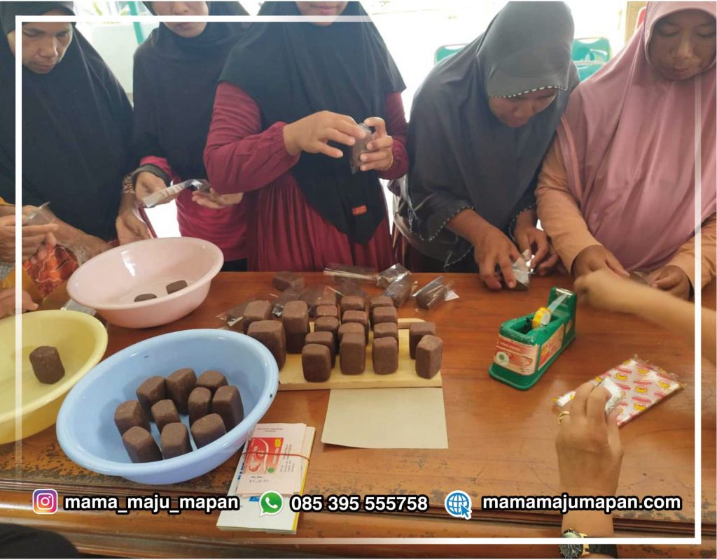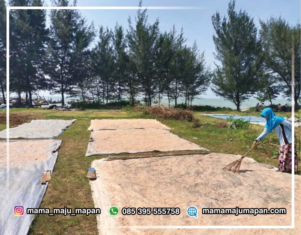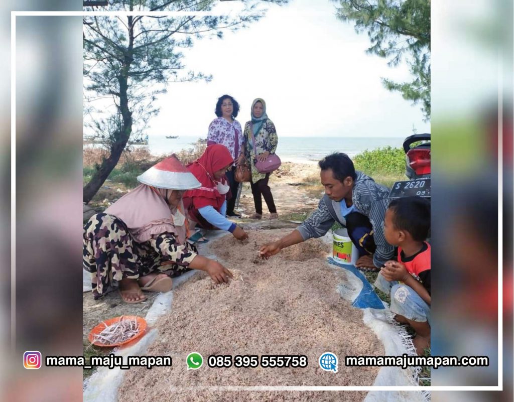 Mama Maju Mapan berkesempatan memberi pelatihan pembuatan terasi yang berkualitas kepada ibu-ibu di desa Mentoso. Udang rebon hasil tangkapan nelayan diolah lebih lanjut menjadi terasi, sehingga memiliki nilai tambah, dapat dijual lebih mahal dan tentu saja membuka lapangan pekerjaan.